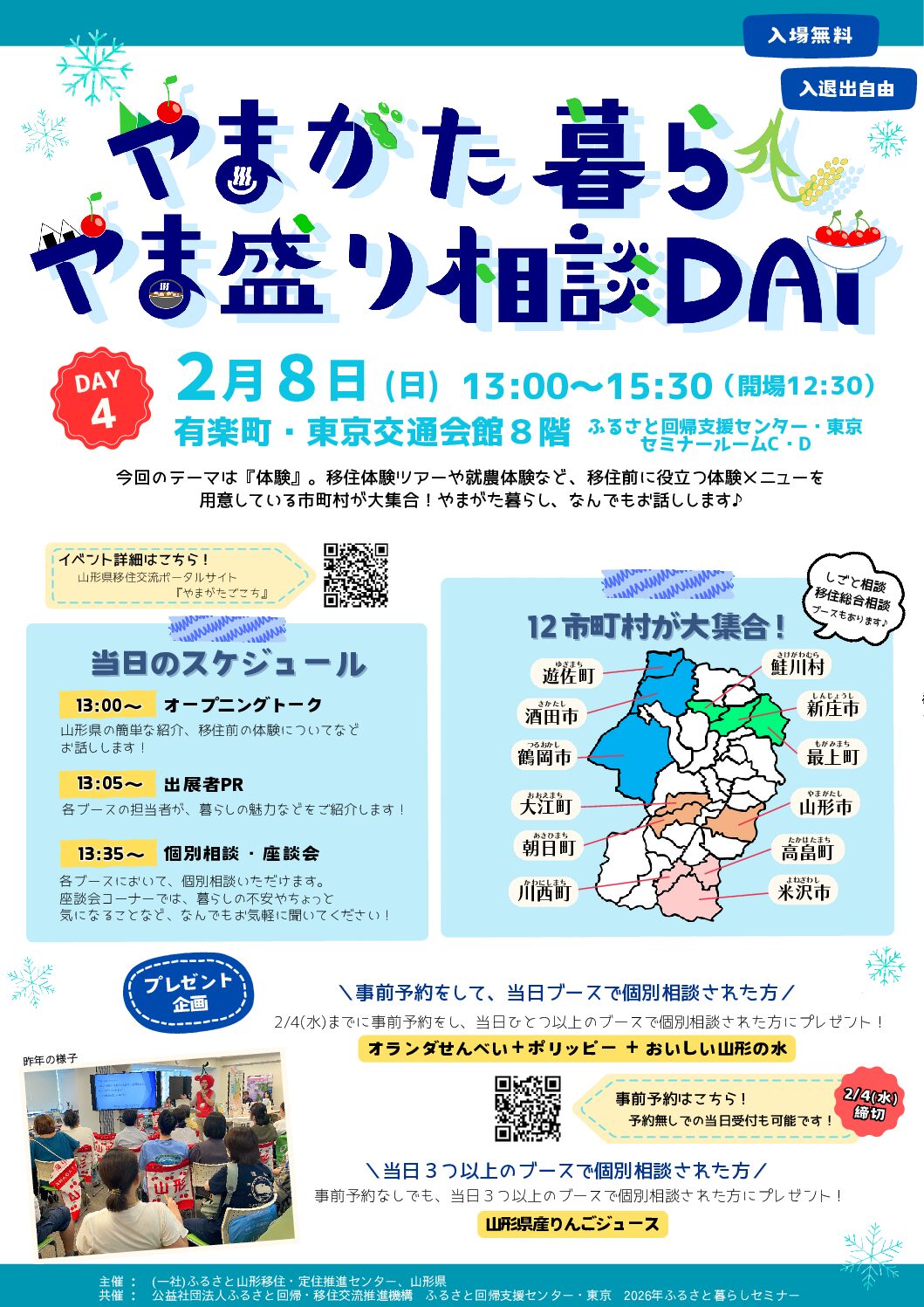 2026年2月8日(日)に、東京交通会館(東京有楽町)にて開催される「やまがた暮らしやま盛り相談DAY【DAY4】」に、山形県米沢市の移住相談ブースを出展します!